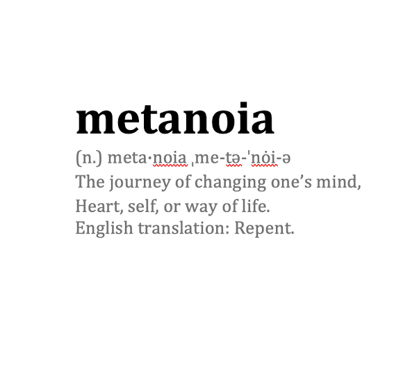 Metanoia refers to the turning away of the mind, a shift in the way a man think. Metanoia is the word used to describe what Christians call repentance, which is more than turning away from sin. Metanoia is to see from another perspective, to change the way you think of a matter. Metanoia is to alter your view, your framework, your mindset.